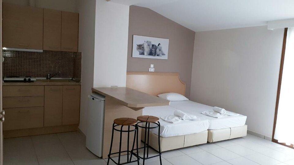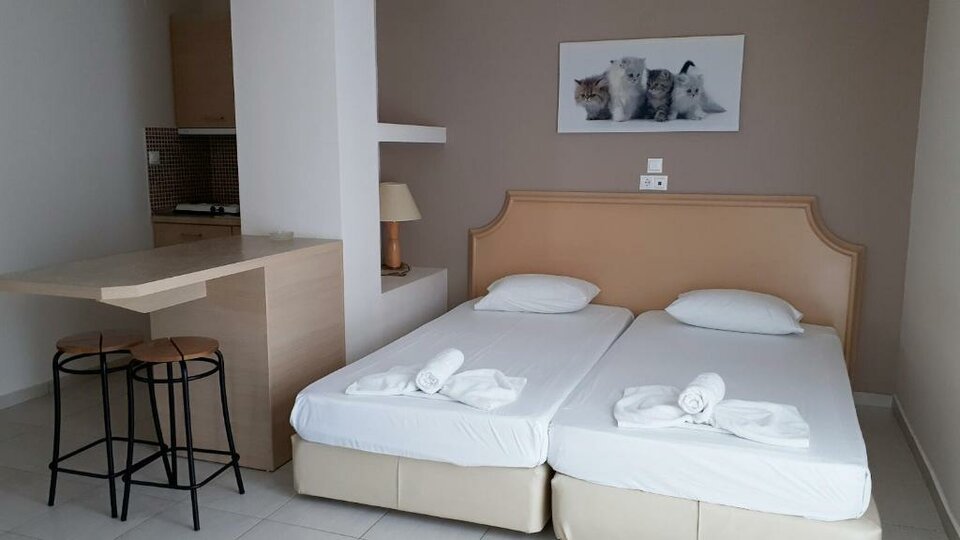 0 Situat in satul pitoresc Hanioti, Halkidiki, Hotelul Asteras ofera un paradis de relaxare la doar 100 de metri de stralucitoarea Marii Egee. Acest hotel fermecator, detinut de o familie, este situat perfect pentru a experimenta ce este mai bun din Hanioti, un sat vibrant plin de farmec traditional grecesc si facilitati moderne. Hotelul Asteras ofera o evadare linistita la doar cativa pasi de actiune. Alegeti dintre camere confortabile, cu aer conditionat, fiecare avand un balcon cu vedere incantatoare la gradina si o chicineta pentru un plus de confort. Relaxati-va pe terenul verde spatios al hotelului, perfect pentru copii sa se joace, sau bucurati-va de o masa delicioasa pregatita pe facilitatile de gratar din zona comuna. Locatia strategica a lui Hanioti il face o baza ideala pentru explorarea regiunii mari Halkidiki. Salonic, capitala nordica a Greciei, este la doar o ora de mers cu masina, oferind o scena culturala vibranta. Pentru cei care doresc sa exploreze in continuare, satele fermecatoare Kassandra si Sithonia sunt usor accesibile. Facilitati Asteras Servicii Receptie (08:00-23:00) ATM (in apropiere) Birou de schimb valutar (la piata principala - BROS TRAVEL) Magazine (in apropiere) Doctor (de garda) Inchiriere de masini si biciclete (la receptie) Internet WiFi in camere WiFi in zonele comune Alimente si bauturi Baruri Copii Loc de joaca pentru copii Activitati Plaja organizata (in apropiere, 100m)