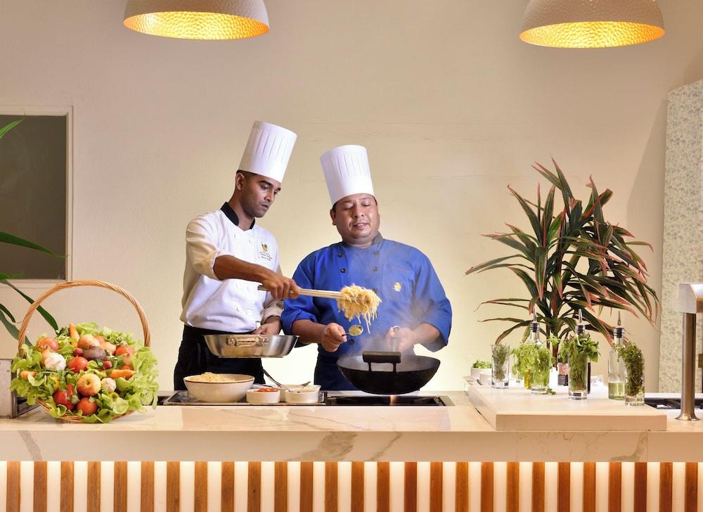 Dining Satisfy your appetite with international cuisine at Le Cotomili, one of the resort's 2 restaurants. Unwind at the end of the day with a drink at the bar/lounge or the poolside bar. Buffet breakfasts are available daily from 7 AM to 10 AM for a fee.