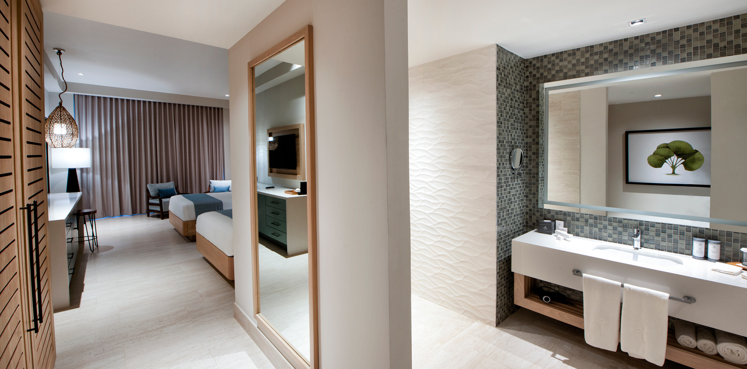 Out of the 1042 rooms which make up our accommodation at Playa Bavaro, 1016 are Junior Suites, some of which have been adapted for those with reduced mobility. These include our Queen, King, Corner and spectacular Swim-Up suites, the latter with direct access to the pool area. The hotel also has 20 large suites boasting independent facilities and privileged locations.